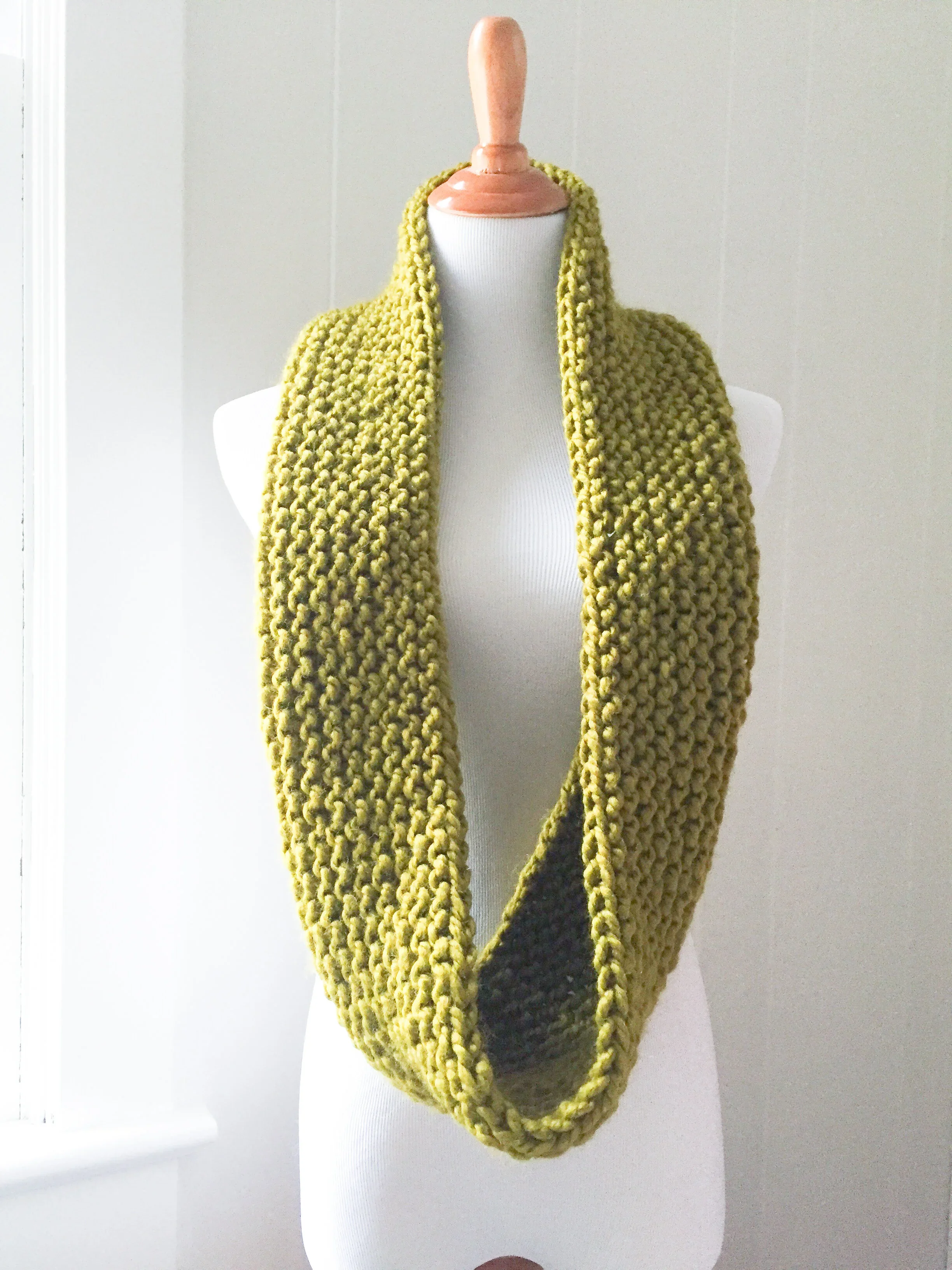 Knit Garter Stitch Infinity Cowl Scarf | Free Pattern