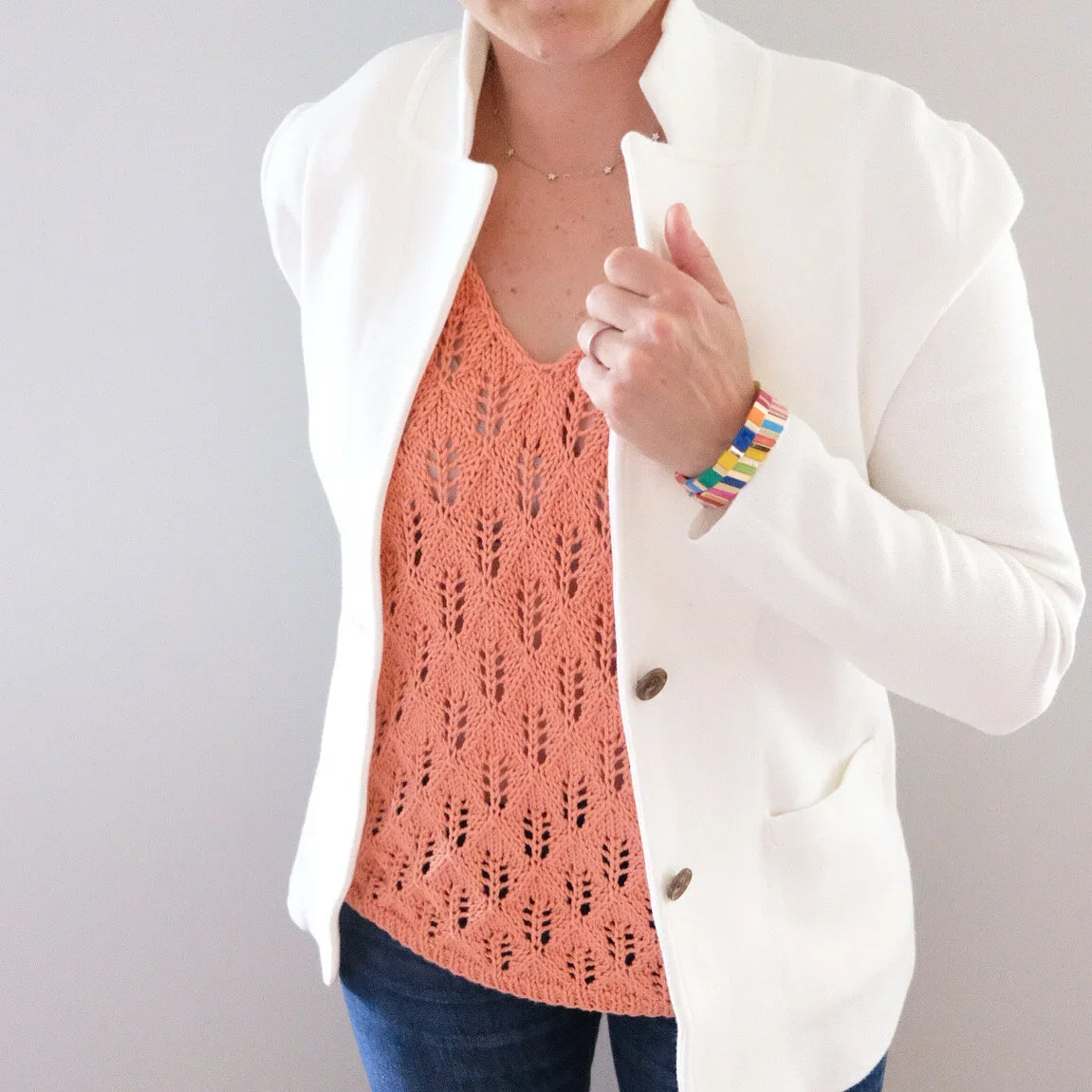 I’m so excited to introduce my McKenzie Tank! The McKenzie Tank is a light and airy summer top that’s comfortable and cozy. The feather diamond lace stitch gives the tank a sophisticated look with a fun texture. Wear it by itself or under a cardigan or jacket — it will not disappoint!