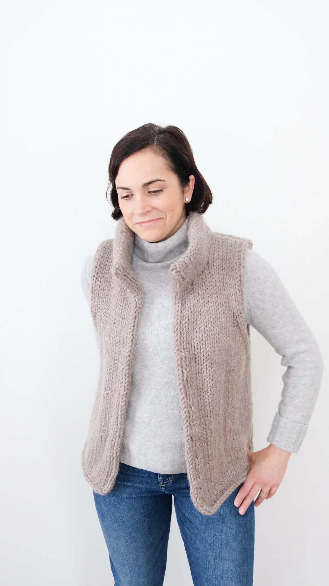 The Adventurer Vest is a cozy, textured layering piece that’s as practical as it is stylish. Knit in super bulky yarn with a bold stitch pattern, this vest creates a warm, structured fabric that layers beautifully over tees, flannels, and sweaters alike. Designed for every day — whether you’re grabbing coffee or heading out for a chilly hike — it’s the kind of piece you’ll reach for again and again.