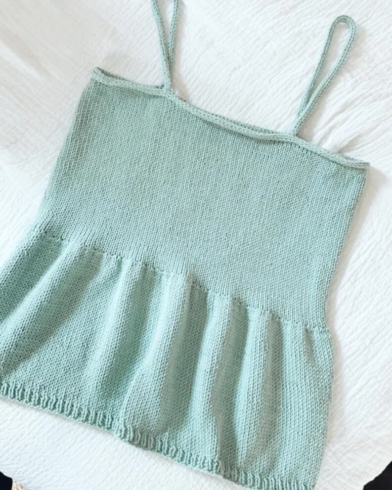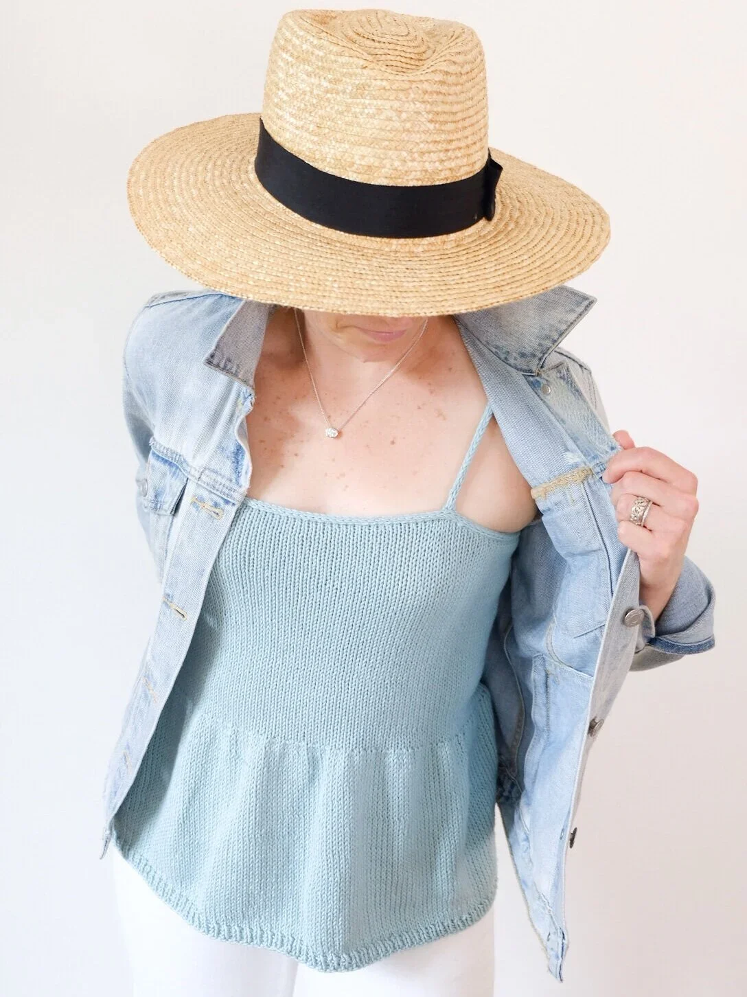 The Parkside Peplum Top is a fun summer knit with a classic look and the perfect amount of flare. It’s knit from the top down in the round so you can easily adjust length as you go. An i-cord edge at the top is added at the end with simple i-cord straps.