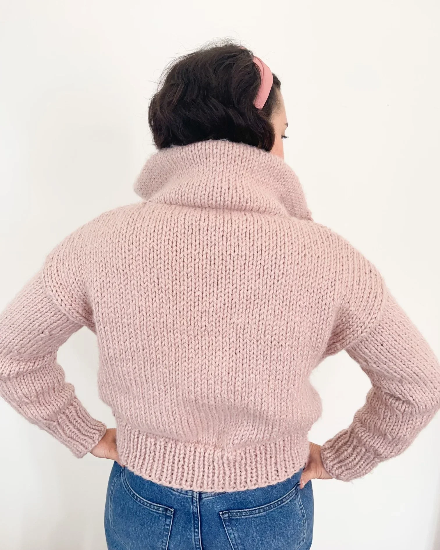 Chunky Cropped Cardigan Knitting Pattern | Pink Wildflowers Sweater