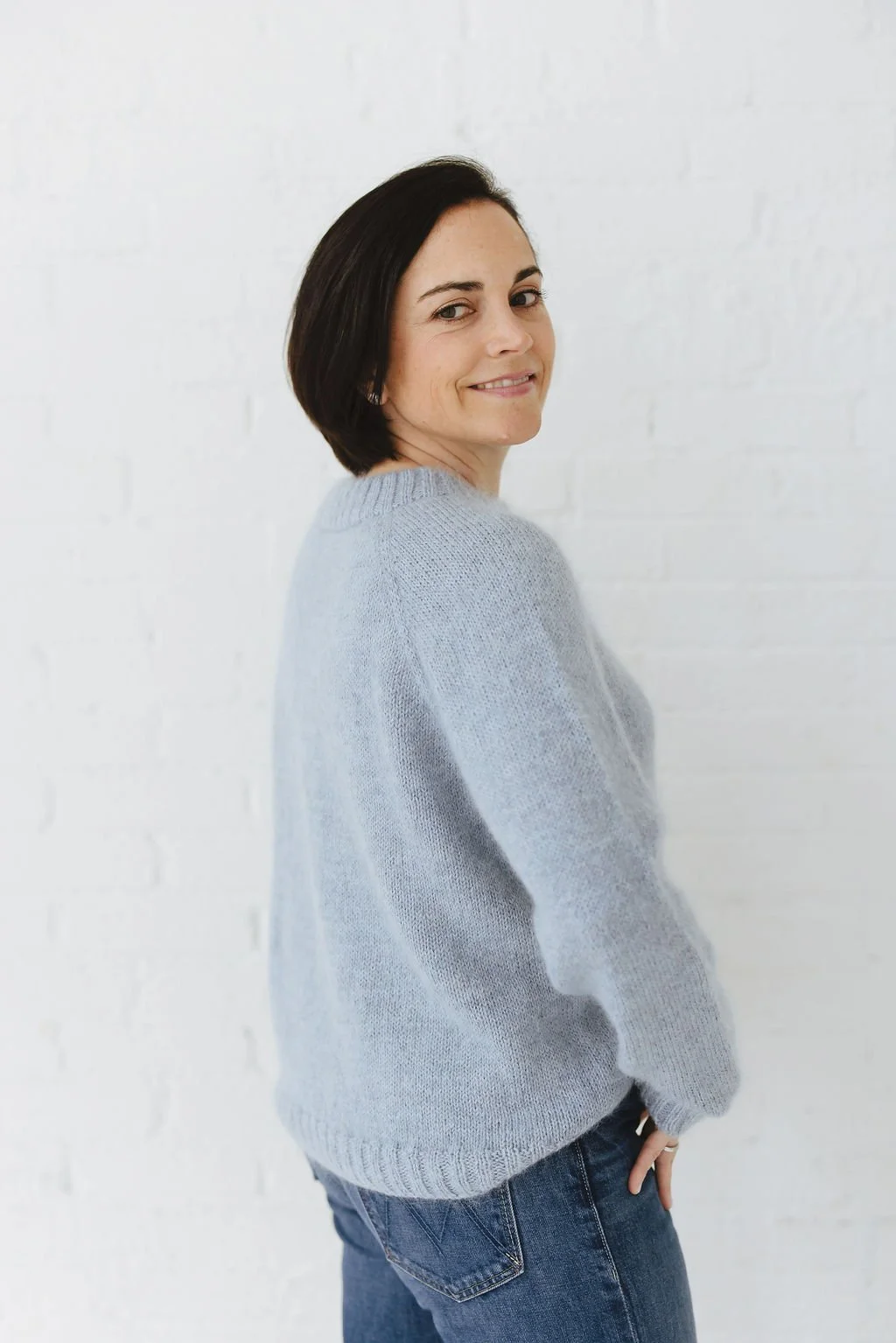 The Soft Shore Pullover is worked from the top down. The yoke is knit flat first to shape the neckline, then joined in the round once the depth is established. Raglan increases create the shaping through the shoulders. After completing the yoke, sleeve stitches are placed on hold and the body is knit in the round and finished with a clean 2x2 rib hem. The sleeves are returned to the needles and worked in the round with gentle shaping and 2x2 rib cuffs. The combination of DK yarn and a strand of mohair create a soft, polished fabric that elevates this simple wardrobe staple.